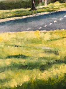 In Winter, as in this painting, the trees are pared back, skeletal yet solid armatures that let in a cool, crisp light that saturates the street with full fat, fully saturated colour.