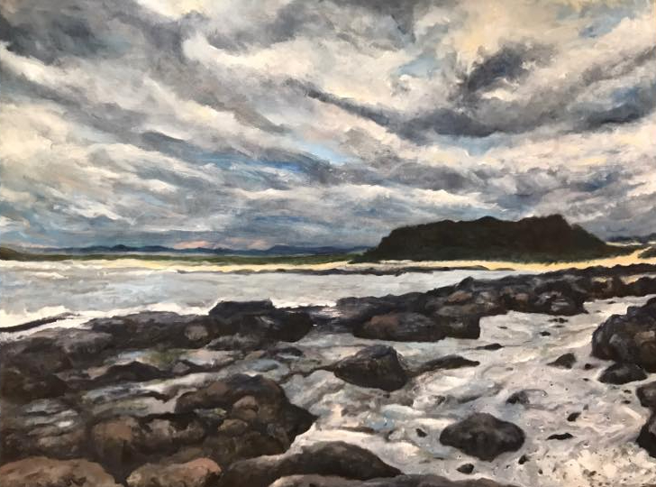 Painting for the the lovely Trish and Shamus who helped my family and I so much last year. Although their kindness and generosity can not be repaid, it’s been a real pleasure for me this week to do this painting for them. It’s an attempt to bring the South Coast to them, knowing how much they will miss going to the coast at Easter.
