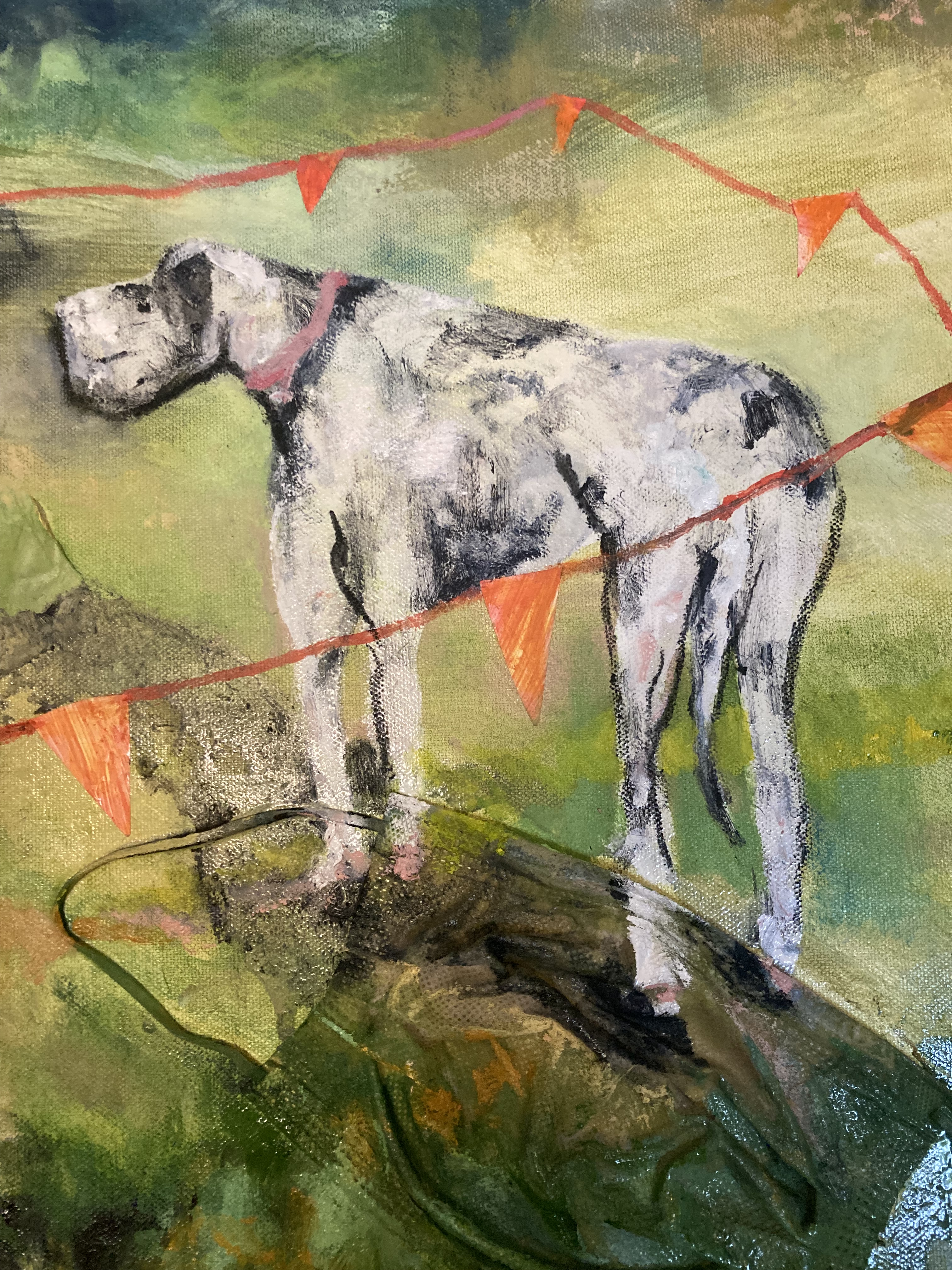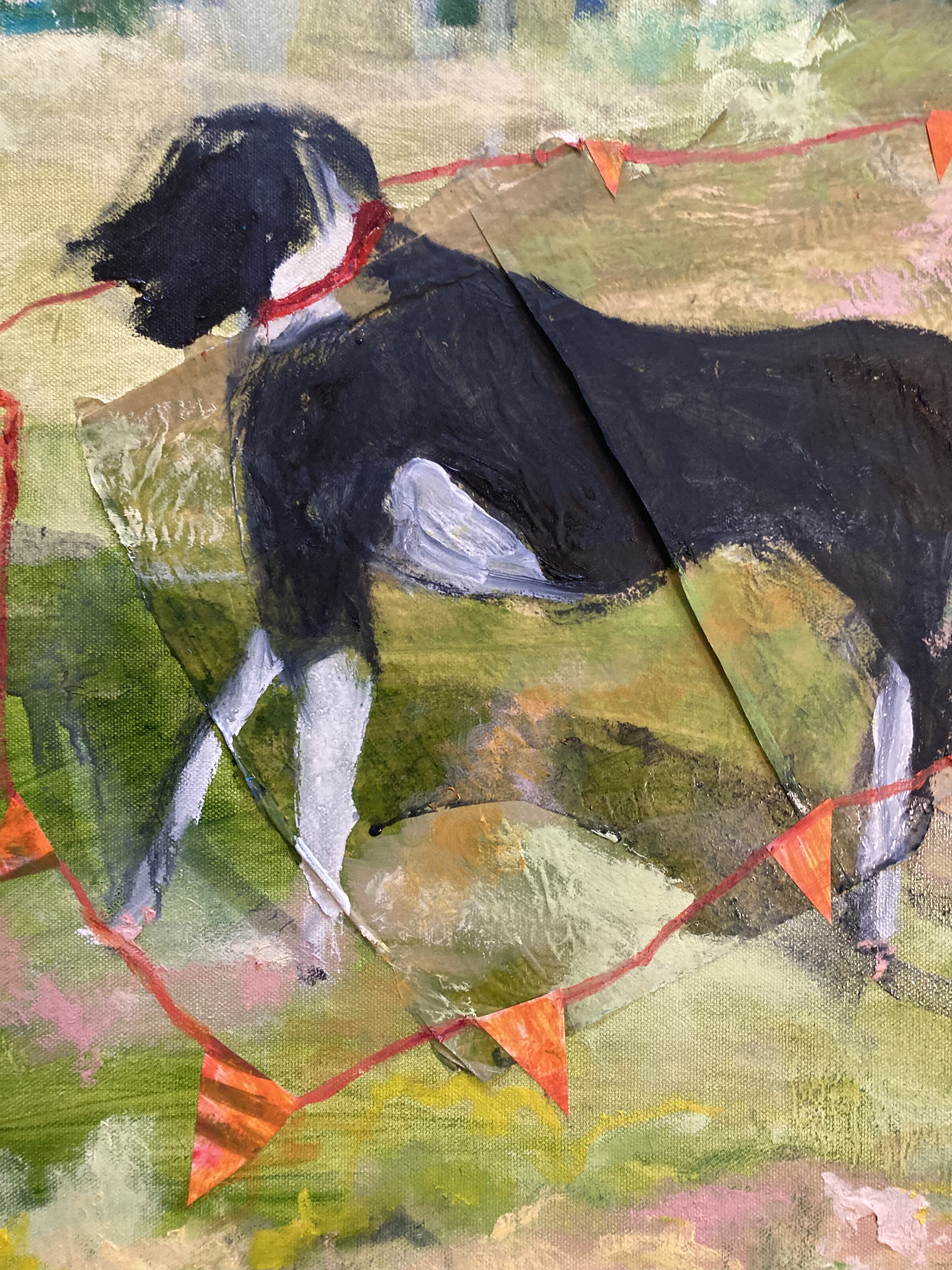 As often, in my paintings, there’s a hint of a path symbolizing the road taken and I hope a sense of beauty, playfulness and pleasure in the little, ordinary, and extraordinary things, that make up a life’s journey (with or without dogs).