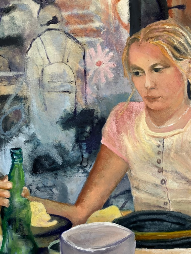 At dinner that night, I was struck by the way both girls were somewhat disconnected from the general proceedings in a thoughtful, quiet, and distant, kind of way. Turns out that there was a whole lot of lifechanging drama going on for their family, which I was unaware of, at the time. Had I been aware of it, I wouldn’t have painted this portrait.