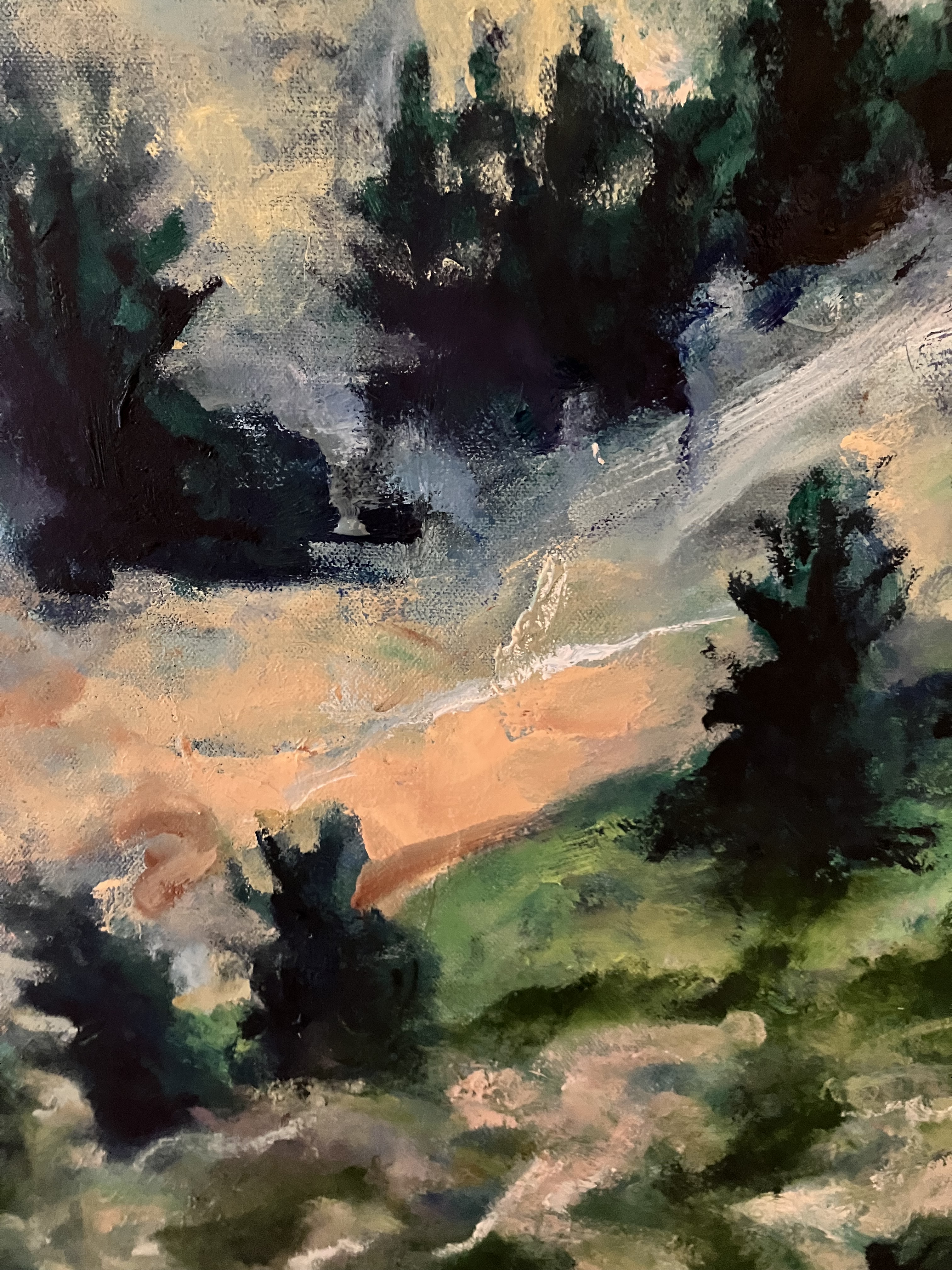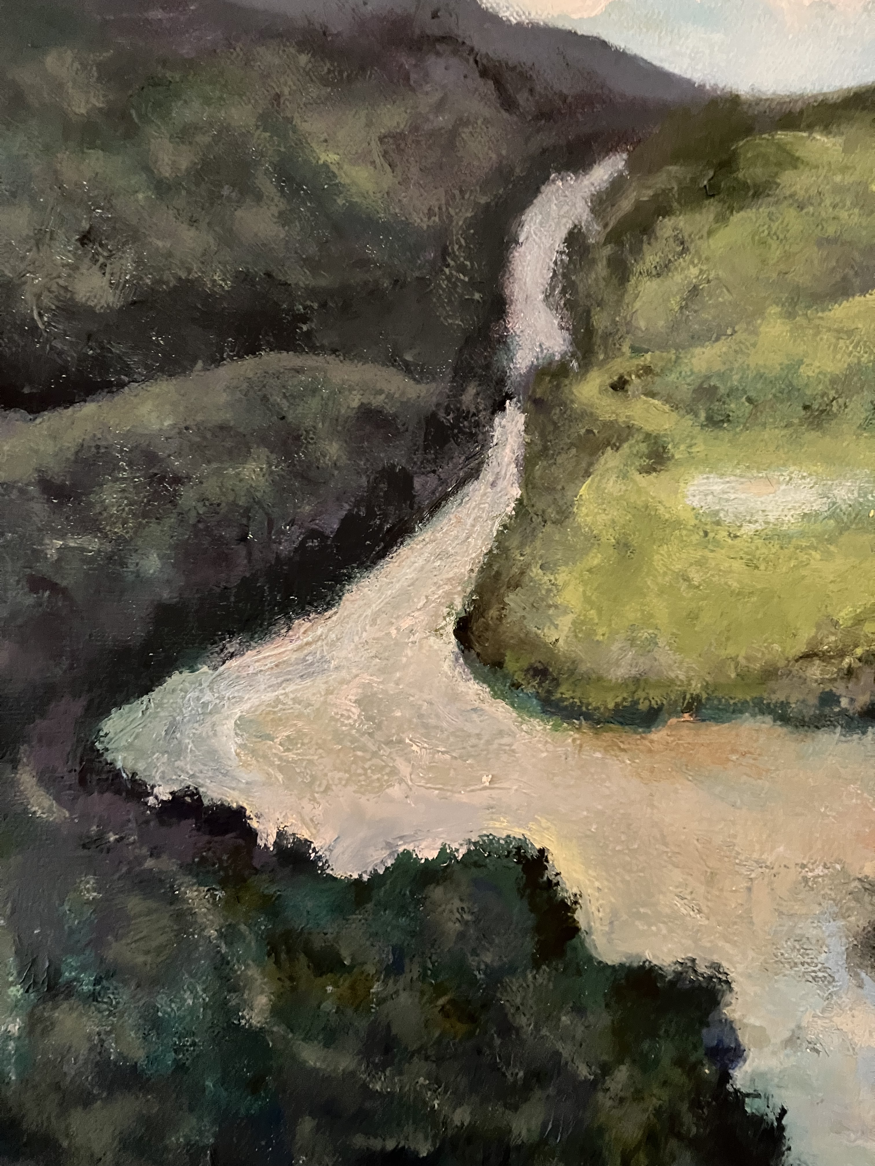 Recently, I saw a painting of the same view in the 1920’s. Surprisingly, there is significantly more trees around now, in this view, than there was then. Unsurprisingly, there are more little tracks and pathways crisscrossing the landscape.
