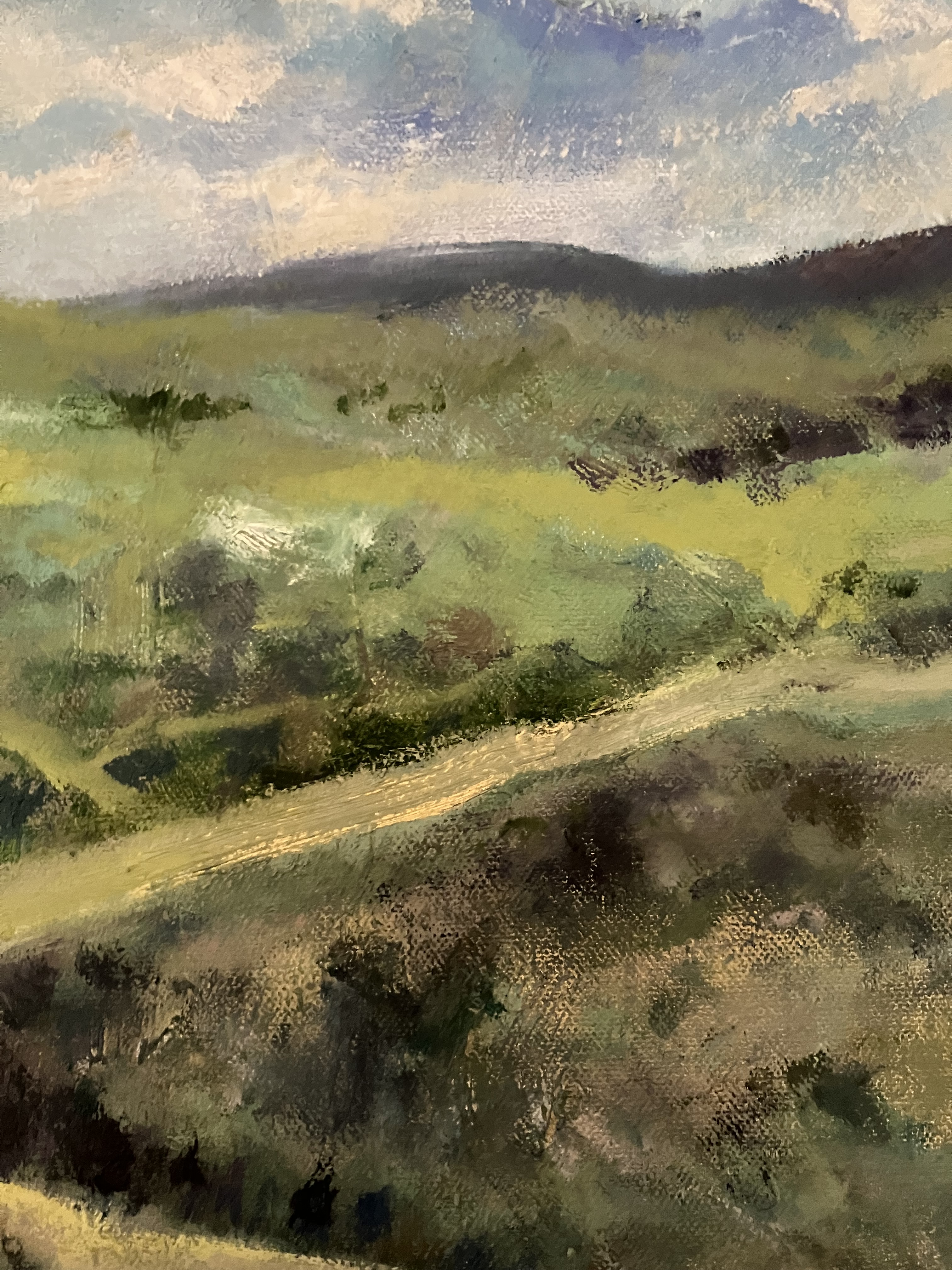 I really love the view further along from this point if you are heading out on the road towards Wee Jasper, but as that is outside the ACT, my painting stops here.