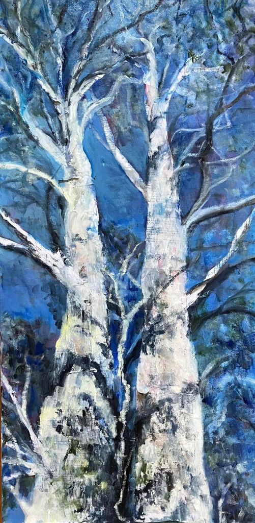 I’m doing a series of paintings which are primarily along the lines of green urban space, street trees I (and others) know and love, and other little snippets of old, or un-noticed Canberra. Or something like that.