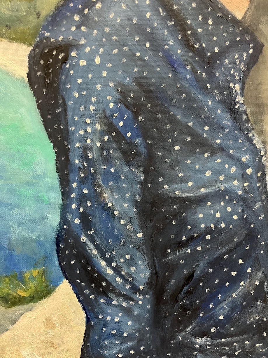 Clearly, there’s a lot that draws me to do a painting from a particular photo and a lot of things to tease out. And the spotted shirt. I wanted to paint that spotted shirt.