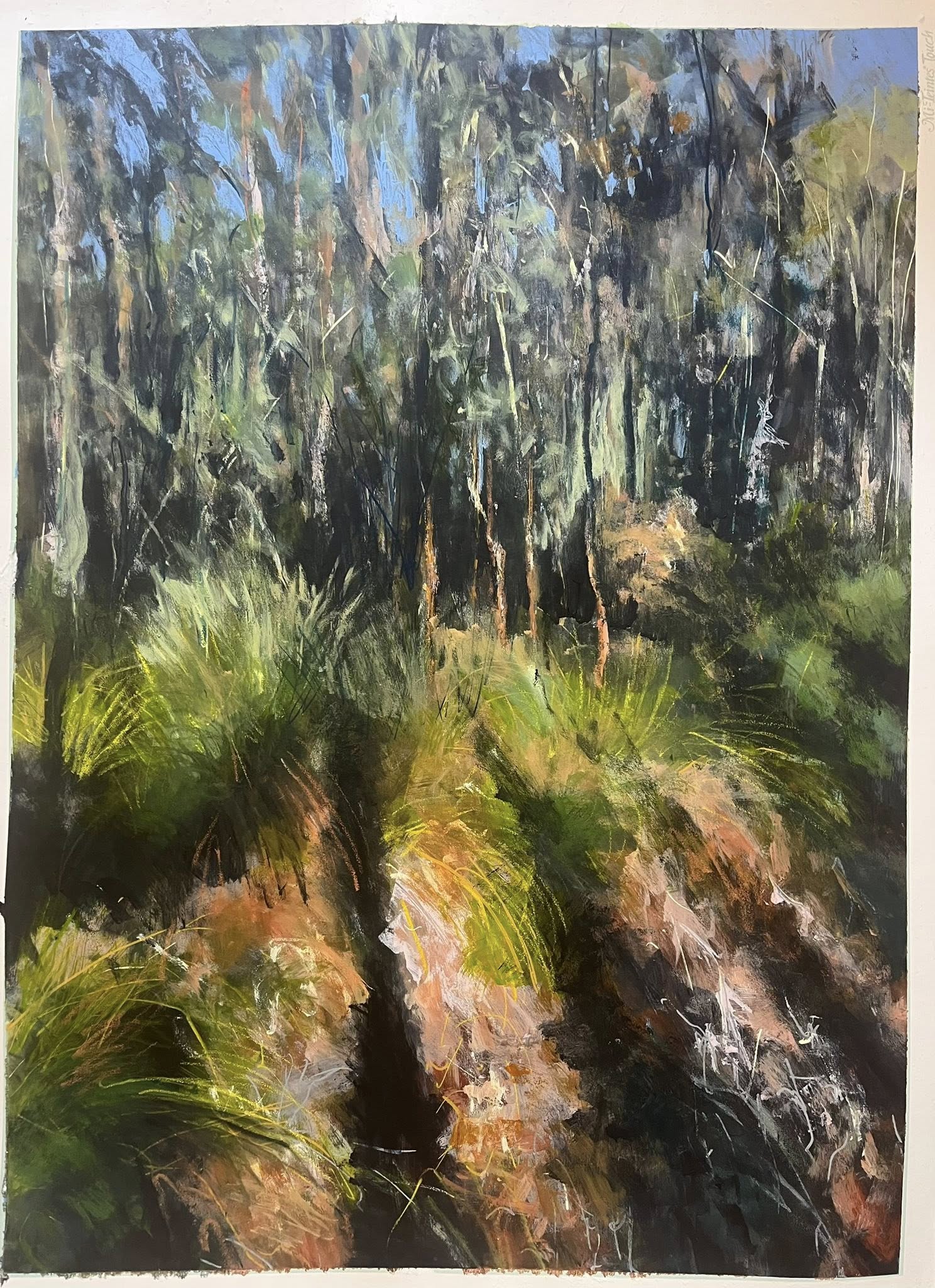 Grandfather’s Gully. Grandfather’s Gully. December 2025Mixed media (charcoal, acrylics and ink) on paper. 70 x 50 cms. $100. Related