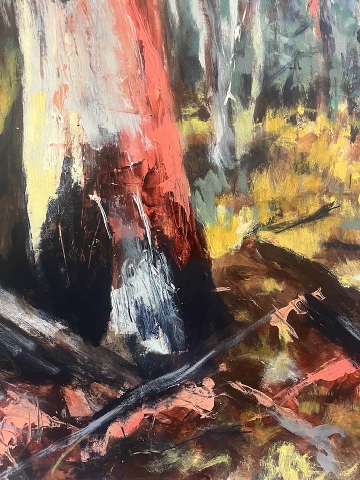 Honeysuckle Creek walk 2. Honeysuckle Creek walk 2. January 2026Mixed media (charcoal, acrylics and ink) on paper. 71 x 52 cms. $100. Related