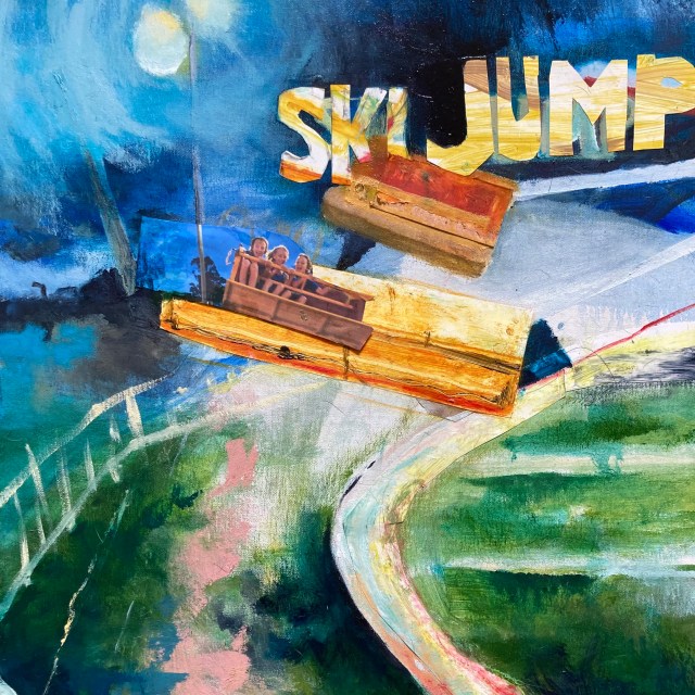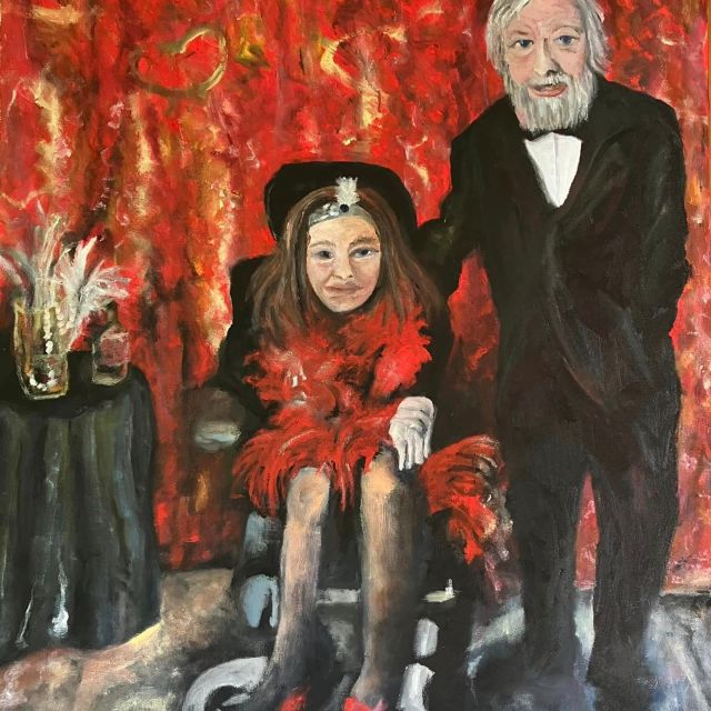 Portrait of the Chief Economist (in Crimson Rosella garb) on a rainy-day dog walk
